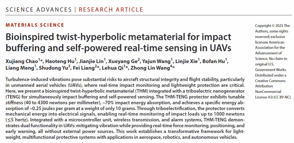51动漫 齐乐华教授团队在UAV防护-感知一体化力学超结构研究...