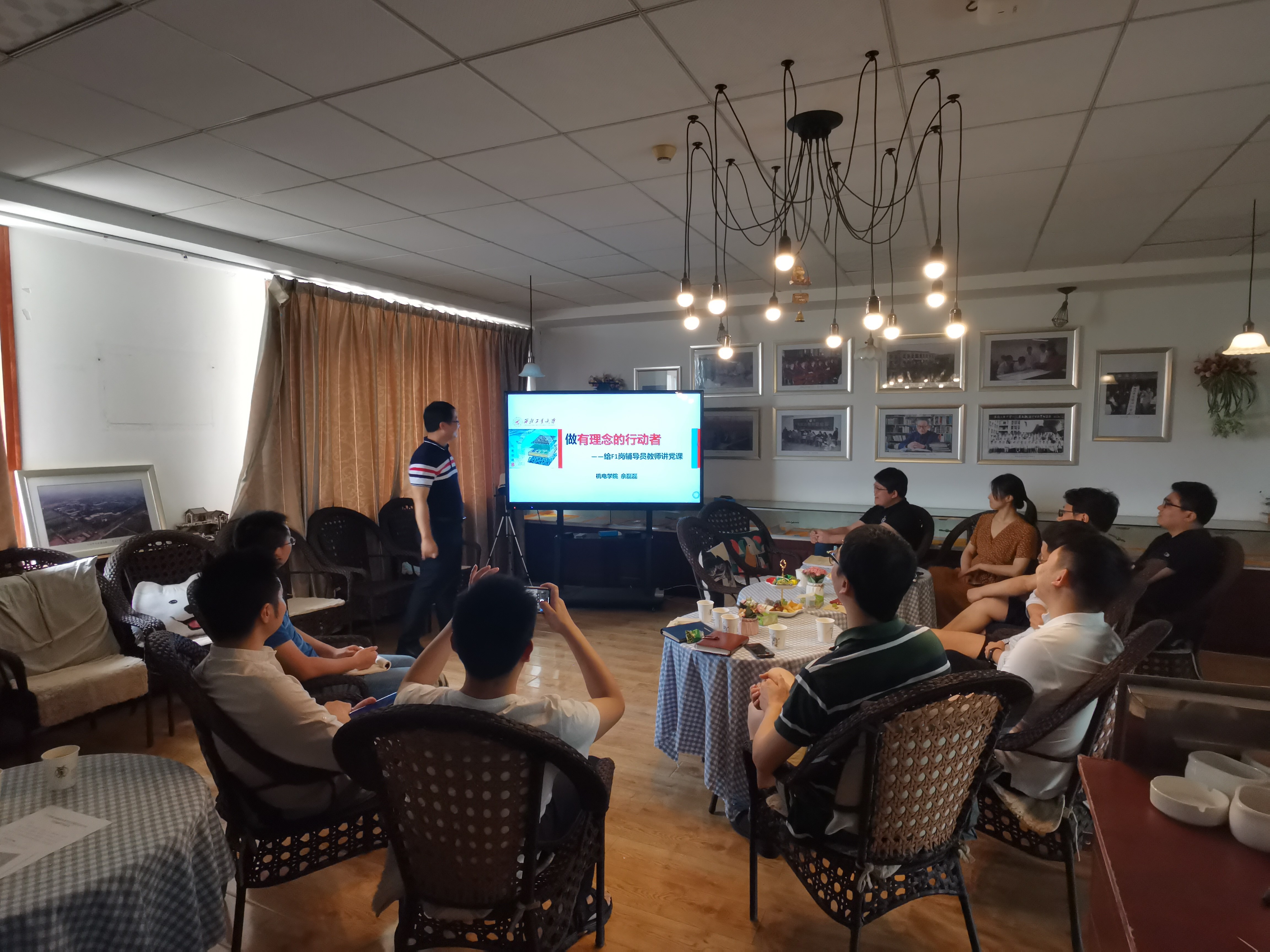 党委副书记佘磊磊在航空楼B座天工沙龙为学院的F1岗辅导员们讲授了“做理念的行动者”主题党课。