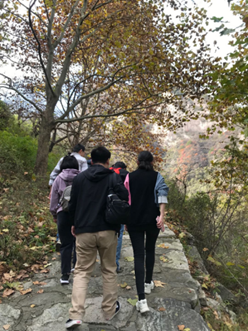 全体教职工早早的到达翠华山,欣赏到了翠华山的深秋早间美景。深秋清晨的翠华山,山间薄雾缥缈、溪流潺潺、红叶漫山,红日隐隐现现,山风阵阵、激起飞鸟凌空,雾散山清,美不胜收。