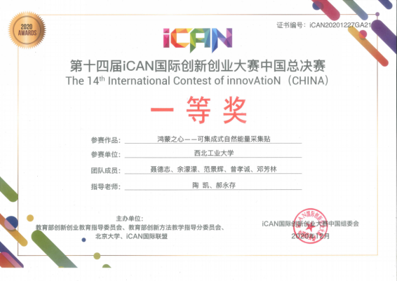近日,微纳米小精灵创新基地传来喜讯,我校在浙江余姚举行的第十四届iCAN国际创新创业大赛中国总决赛中再创佳绩。我校学生在本次比赛中斩获国家级一等奖3项,二等奖3项,三等奖14项。其中“鸿蒙之心——可集成式自然能量采集贴”取得了中国五强第一名的好成绩,将代表中国赛区参加2021年度的iCAN国际创新创业总决赛。我校也因此蝉联两届全国冠军!