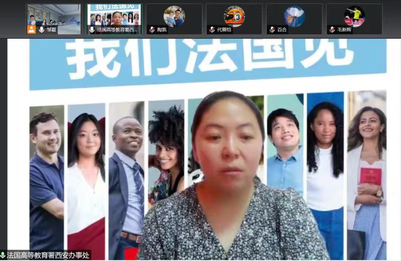 外事秘书邹夏、法国高等教育署西安办事处负责人穆锐、法国国立应用科学学院中方负责人叶丹及在校生参加了此次活动。活动内容主要包括法国留学学习与生活交流以及与INSA合作项目介绍。