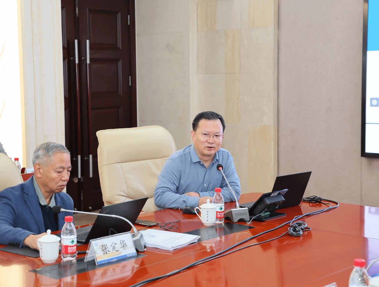 院长常洪龙教授主持欢迎仪式。副校长张开富教授代表学校对参会的各位专家致以诚挚的问候,希望各位专家对工程中心的建设进行严格把关,多提宝贵意见,促进工程中心未来能够更好的发展。