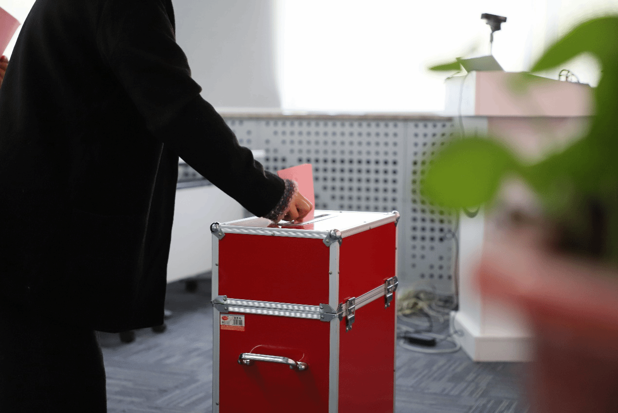 工会委员会选举办法》。总监票人刘书暖同志主持大会的选举工作,大会经无记名投票选举产生了第五届工会委员会委员。