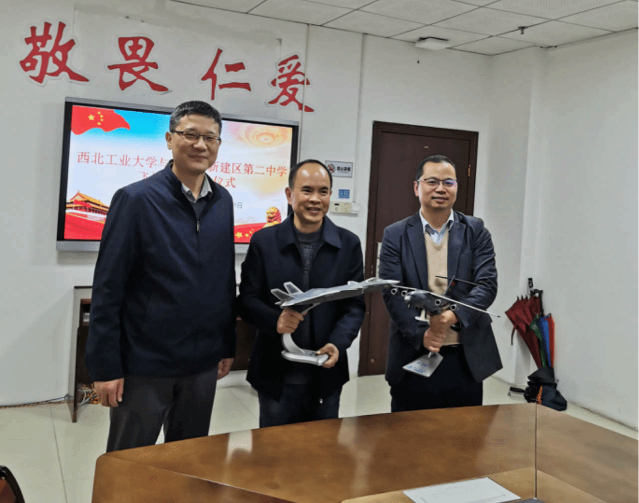 院长常洪龙和党委书记张映锋到江西省南昌市新建二中送喜报和飞机模型,并与中学校长座谈交流,讨论后续招生的相关事宜。据悉,该中学为江西省首批省级重点中学,2023年为我校输送了6名优秀学生,其中2名学生被录取到51动漫
