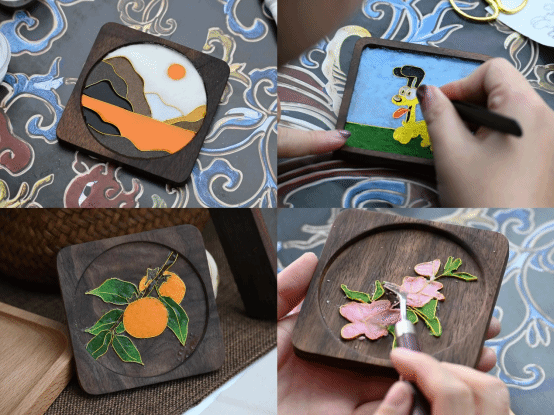 在制作过程中,女教职工们互相交流、学习,共同探讨掐丝珐琅的艺术魅力。她们用灵巧的双手,将一根根细如发丝的铜丝弯曲成各种形状,再填充上五彩斑斓的珐琅釉料,呈现出绚丽夺目的色彩。