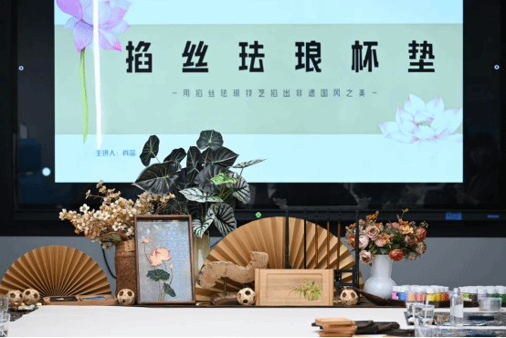活动现场,女教职工们热情高涨,纷纷投入到掐丝珐琅的制作中。掐丝珐琅作为一种传统工艺,以其独特的艺术风格和精湛的技艺备受瞩目。在专业老师的指导下,大家认真学习掐丝、点蓝、封层等各个环节的技巧,亲手制作出一件件精美的掐丝珐琅作品。