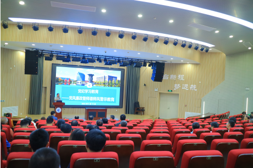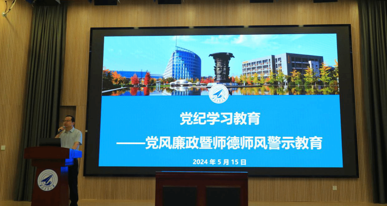 党委在航空楼环D报告厅召开党风廉政暨师德警示教育专题会议,学院领导班子和全体教职工参加会议,会议由学院党委书记张映锋主持。