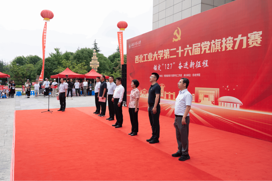 承办的“锚定‘127’,奋进新征程”第二十六届党旗接力赛在长安校区数字化大楼门前广场举行。