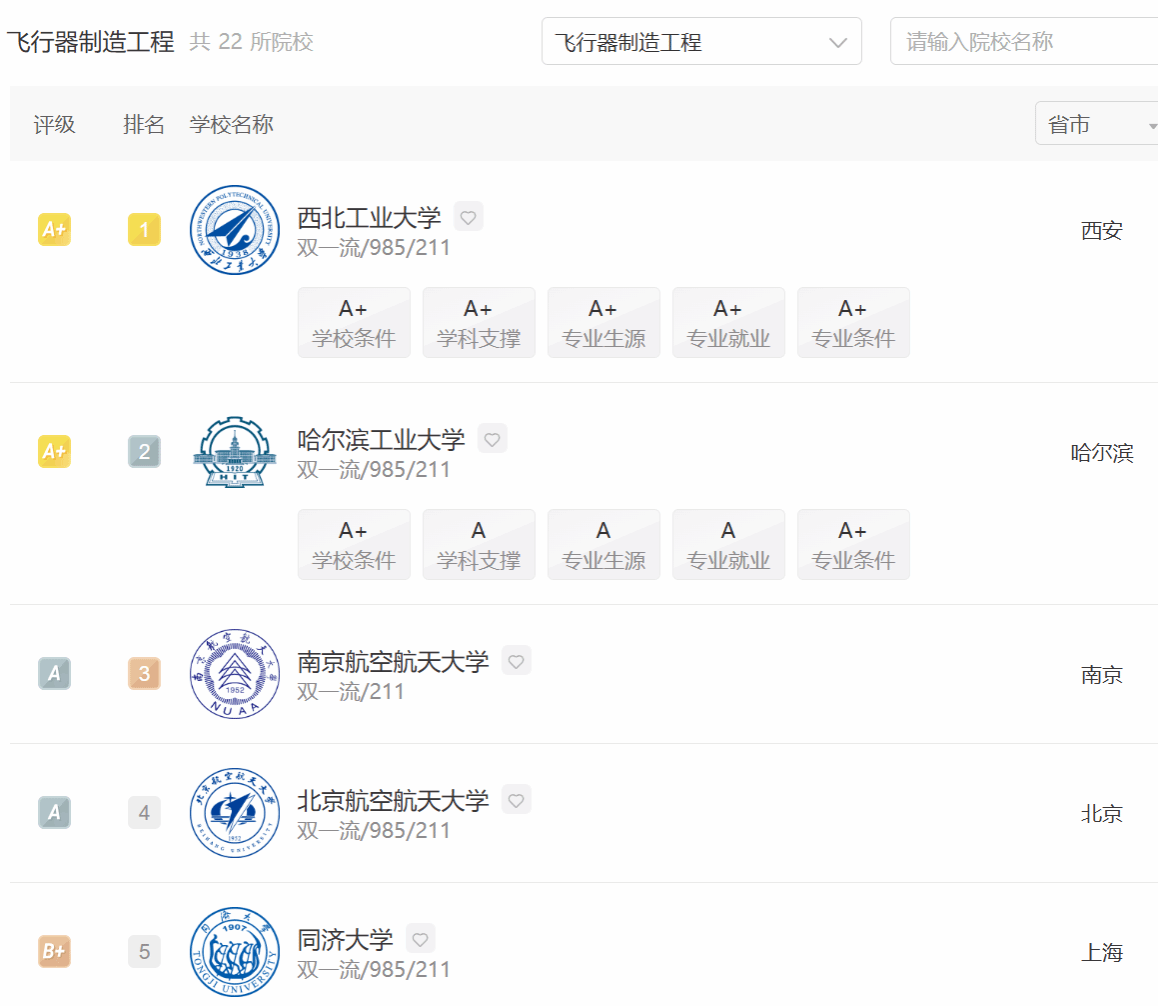 高度重视学科与专业协同建设。此次专业排名的结果表明学院在高水平人才培养和专业建设方面的举措效果显著,为“机械工程”和“航空宇航科学与技术”两个“双一流”建设学科提供强了有力的支撑。