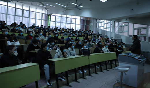 研究生辅导员冯永涛老师进行了积极的就业动员以及全面的安全教育。学院响应疫情防控号召,将全体学生分两个批次开会,同时要求大家在教室中佩戴口罩、隔位就坐。