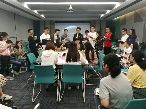 活动前,老师们先将在场的同学分为面试者、面试官和观察者三种角色,并讲述了活动的规则以及每一种角色各自的任务。活动开始拿到题目后,面试者五分钟时间准备,接下来每位一分钟发言,最后是十五分钟的小组讨论时间,形成统一意见。各抒己见,畅所欲言,思想火花的激烈碰撞无疑是这次课程的一大亮点;随后面试官和观察者各选出了代表进行了发言,对之前同学的表现做出了点评。