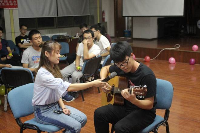晚上七点钟,见面会正式开始。晚会伊始,便是男生们向女生们要微信的环节。女生们坐在场地中央,而一个个大男生一开始都害羞着不敢上前,不过慢慢地就变得主动起来。气氛也开始变得活跃,萌新们首次见面的尴尬气氛随之被打破,为之后的其他活动营造了一个良好的氛围。