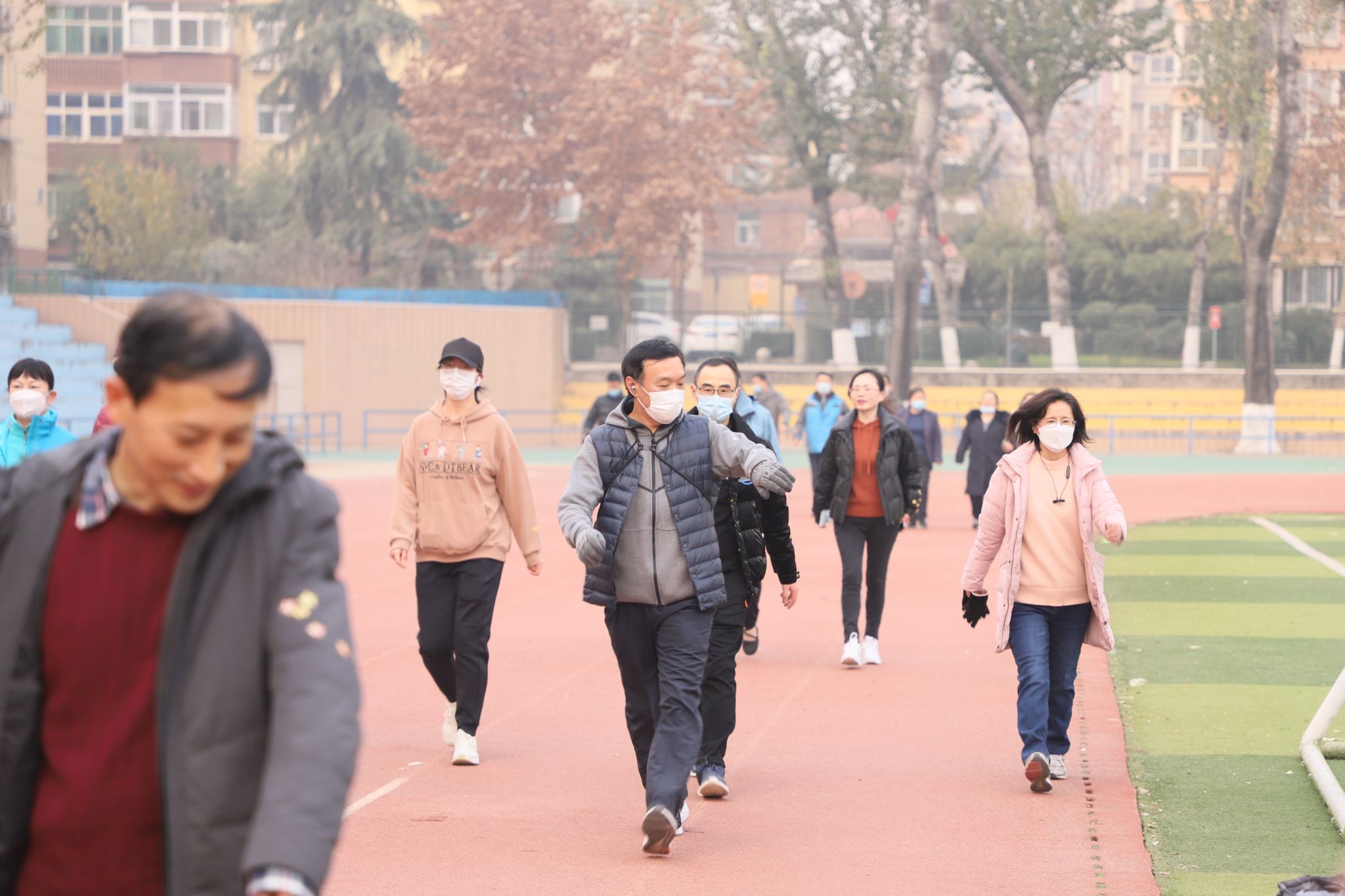 本次活动采取“集星制”,每绕操场一圈即可获得星星贴纸,参赛者需规定时间内尽可能多得获得贴纸。冬日暖阳下,老师们个个精神饱满,迈着矫健的步伐昂首阔步。大家享受健步走的轻松愉悦,欢声笑语不断,在繁忙的教学工作中享受生活的美好。