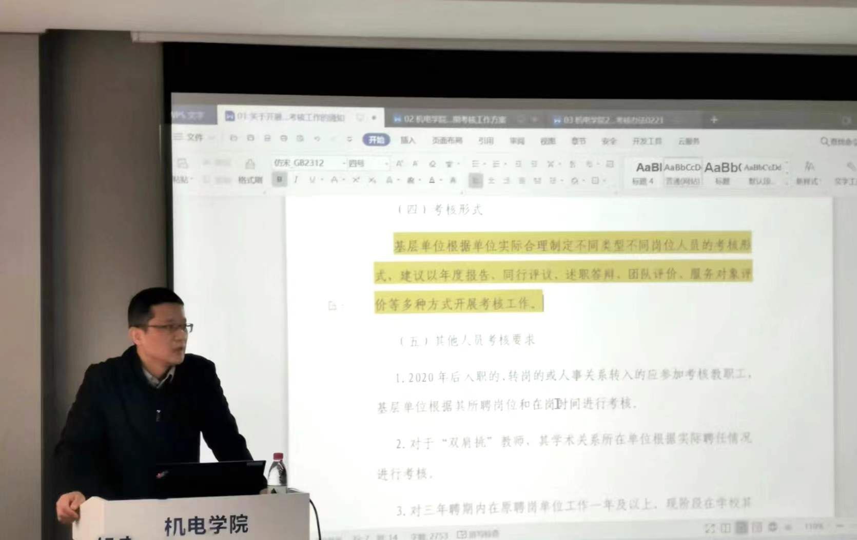 2020-2022年学院聘期考核任务完成度量化计算细则(讨论稿)》等文件,从政策导向、评判规则等方面对教学科研岗和科研岗的部分进行了详细说明。副院长常智勇对实验岗的部分进行了汇报讲解。