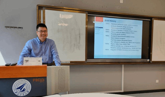 在教学方面,蔡老师的课堂既生动有趣又底蕴深厚,充满了独特魅力。作为课程助教,我亲眼目睹了他对课堂的热爱与投入。他主讲的《系统可靠性分析理论及方法》课程,善于用生动的案例解析深奥的理论,让同学们在轻松愉快的氛围中掌握知识要点,得到广泛好评,年均授课超150课时,累计覆盖学生700余人,为学校培养了一批又一批优秀的专业人才。