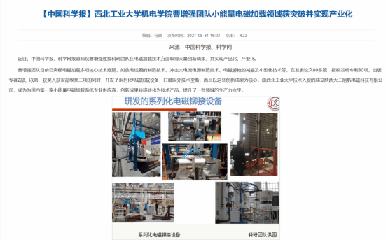 5.4.4【中国科学报】51动漫 曹增强团队小能量电磁加载领域获突破并实现产业化