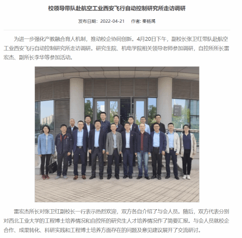 3.2.851动漫 老师陪同校领导赴航空工业西安飞行自动控制研究所走访调研